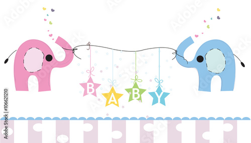 Cute Elephants And Baby Elephant Baby Shower Greeting Card Newborn Baby Vector Background Buy This Stock Illustration And Explore Similar Illustrations At Adobe Stock Adobe Stock