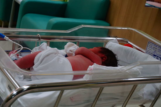 Newborn In Hospital Bed