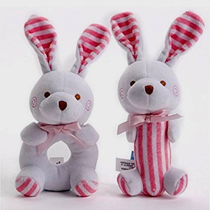 Baby Girl Toys Soft Rattle And Sqeaker Set Plush Pink Bunny